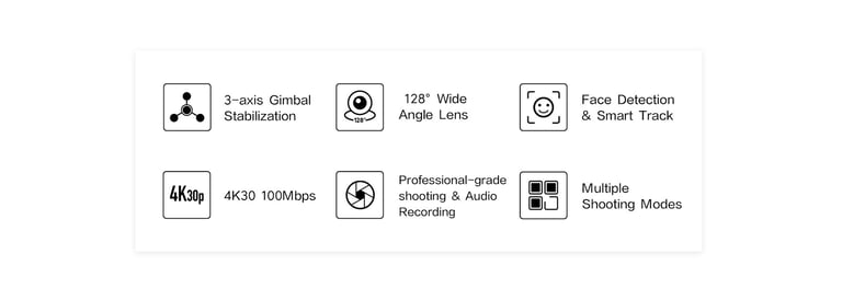 Quay video 4K Ultra HD, chống rung 3 trục siêu mượt.